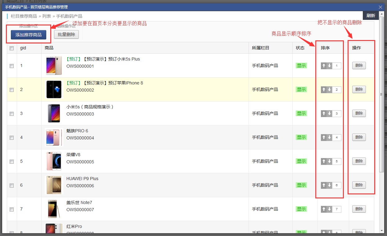 很多新朋友在初次使用openwbs商城系統的時候會遇到一個問題:如何管理首頁顯示的商品分類和商品數量排序?